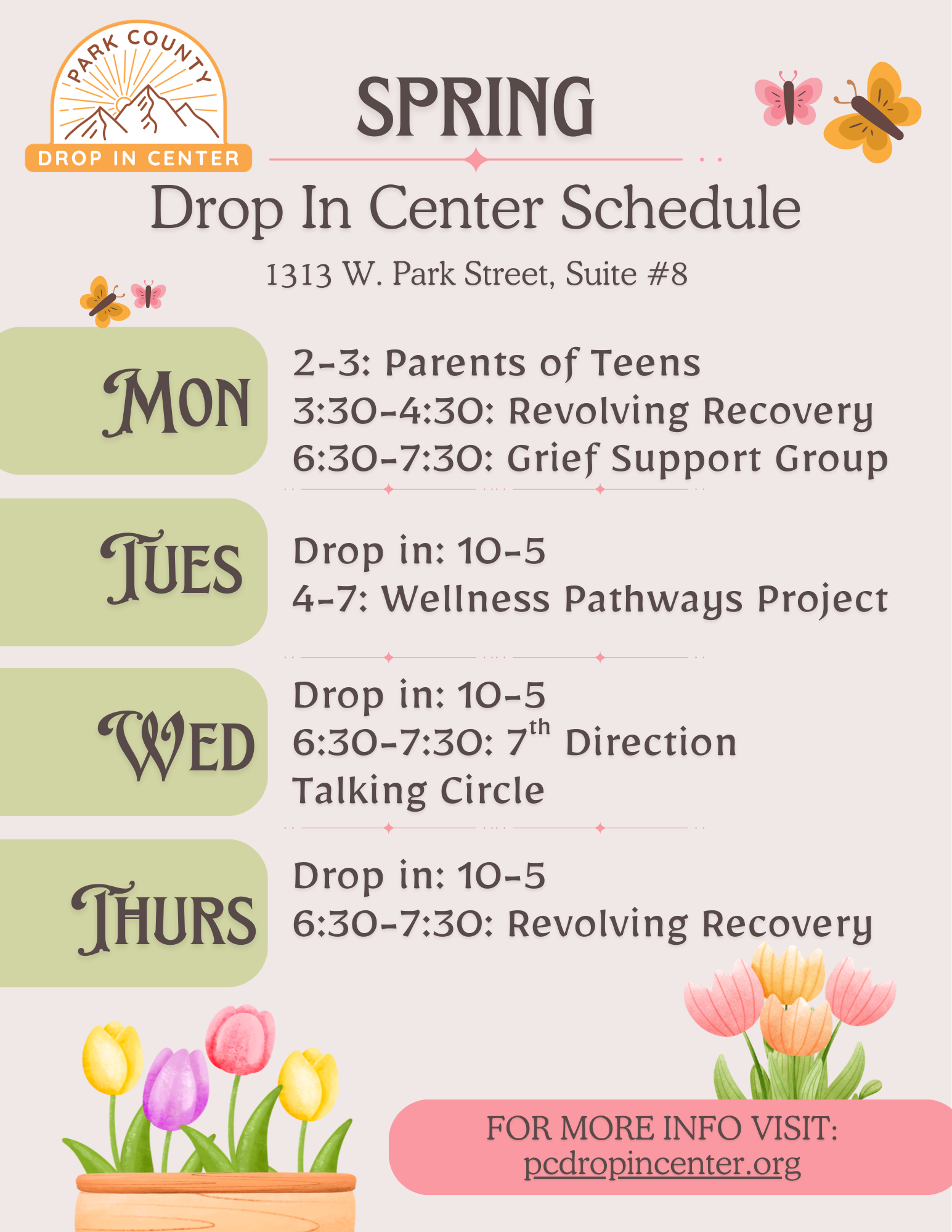 The Park County Drop In Center has been truly invaluable for me in a time in my life when I had no place to go and no one to turn to. After helping my sister with her end of life, losing my animal companion of 16.5 years, and fleeing a horribly abusive relationship I needed help that was truly on the level of miracles. I didn’t want to be here in life anymore and I was losing hope. I needed compassion, understanding and solutions to take care of myself and move forward in my life in the healthiest of ways. When I walked into the PCDIC I was immediately met with compassion and deep understanding. Within minutes I felt like I belonged, and hope began to shine through my deep depression and grief.